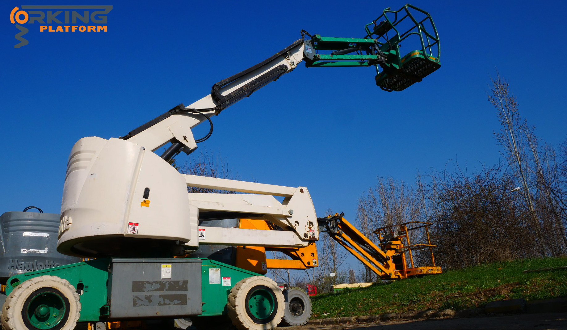 A Haulotte HA 15 IP csuklós elektromos emelő egy jó állapotban lévő, rendszeresen szervizelt emelő