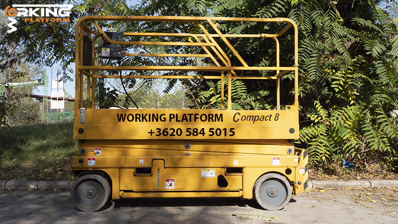 A Haulotte Compact 8 ollós emelő egy jó állapotban lévő, rendszeresen szervizelt emelő