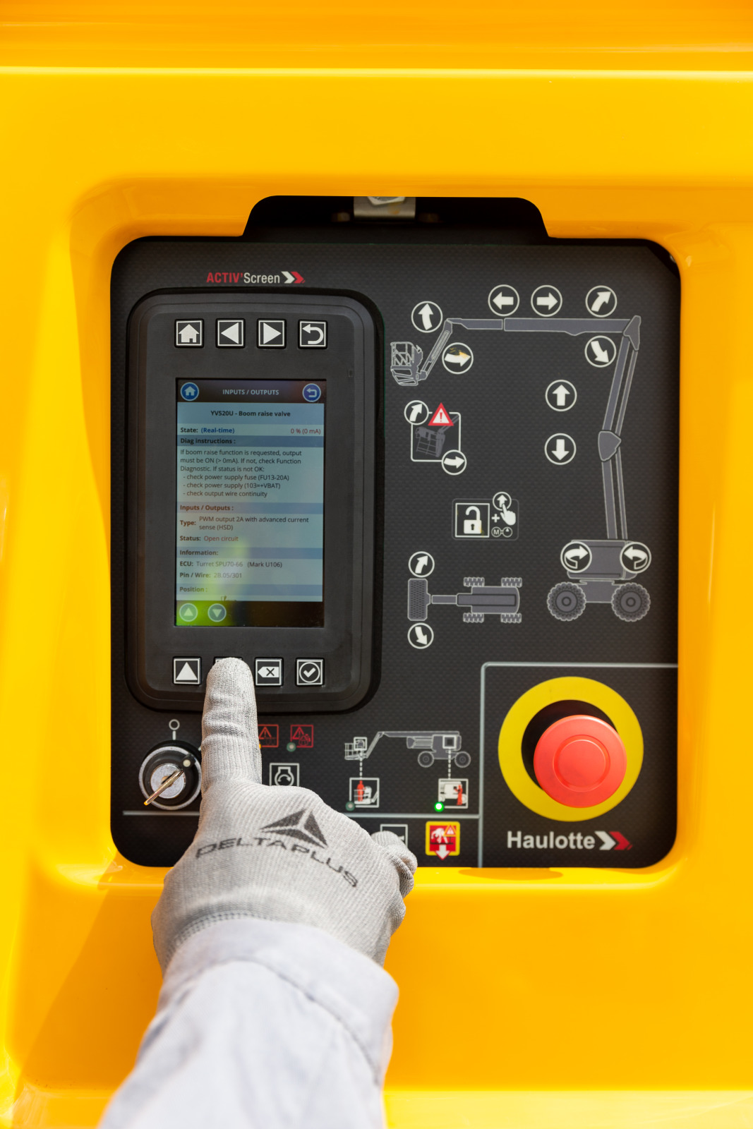 - Haulotte Activ'screen beépített diagnosztikai rendszer